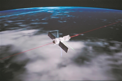 1月19日在北京航天飞行控制中心拍摄的神舟二十号飞船正常轨道飞行姿态的模拟画面。